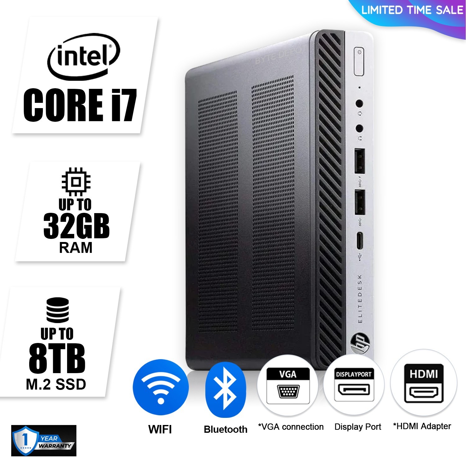 HP Mini Desktop Computer PC i7, up to 32GB RAM 1TB SSD, Windows 11/10, WiFi